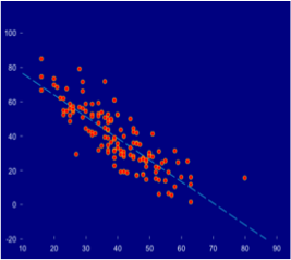 Figure 2: scatter plot illustrating a negative relation between two continuous variables